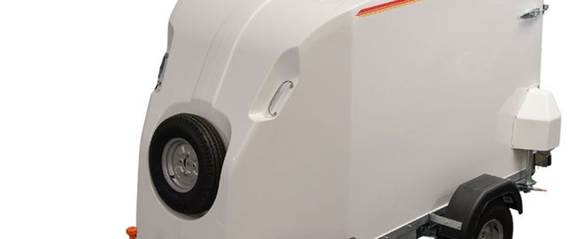 Introducing the SBS TVA1000 Trailer Van. A stylish GRP moulded trailer van. Towable behind the family car and suitable for a wide variety of trades / industries. This version is braked and has a carrying capacity of 750kg.